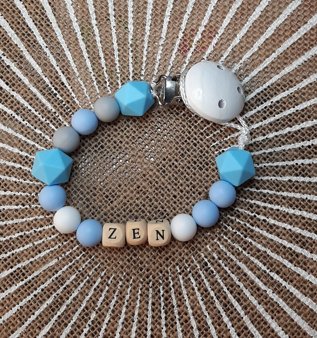 Attache tétine avec message en bois aux normes NF 12586+A1 NF EN71-2 NF EN71-3 NF EN71. Sans BPA, phtalâtes, cadmium ou autres métaux. Bois naturel non traité et silicone alimentaire. Peinture non toxique à la salive et transpiration.