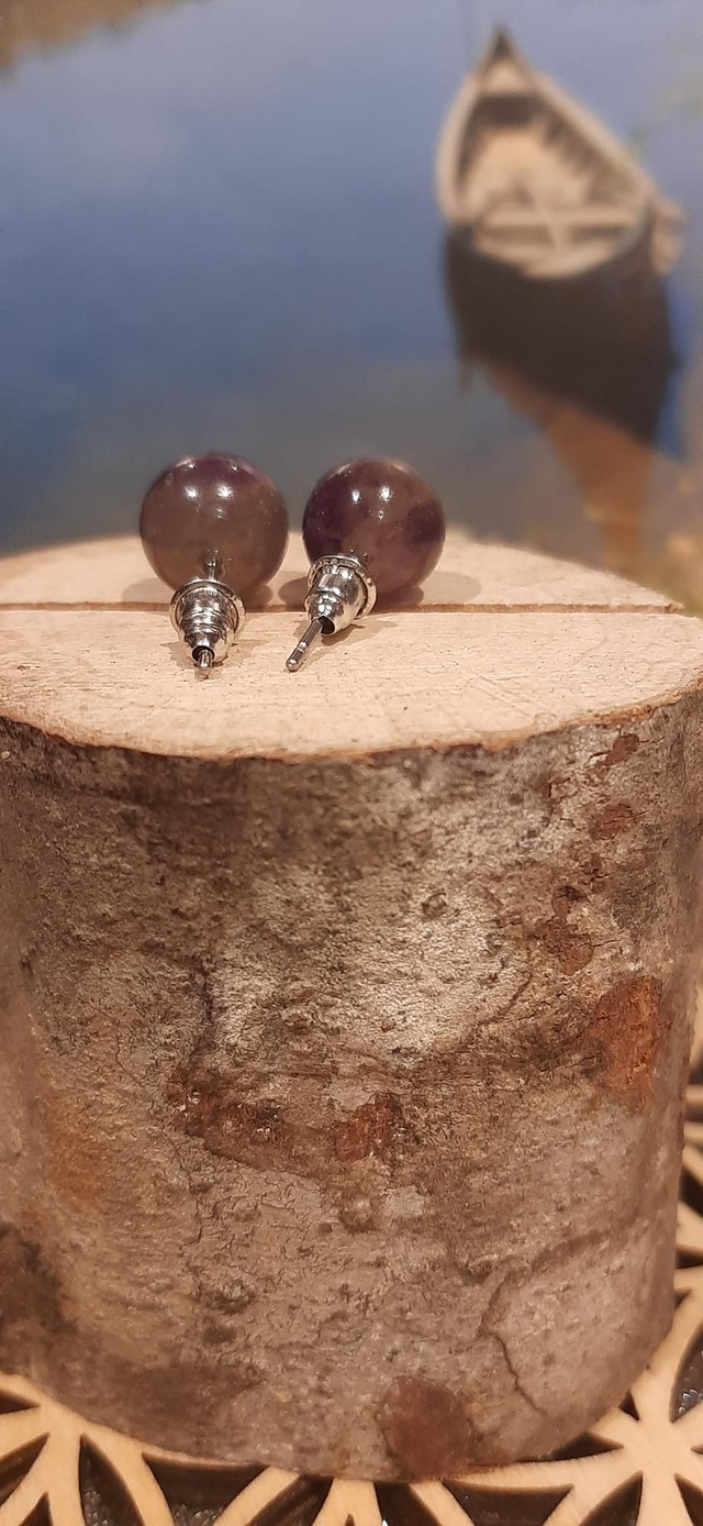 Boucles d'oreilles en pierre d'améthyste. Perle de 10 mm. Tige et attache en acier. (Toutes les pierres chez Betty'S Coiffure & Accessoires sont 100 % naturelles )