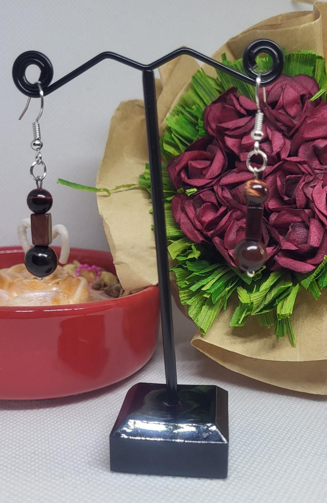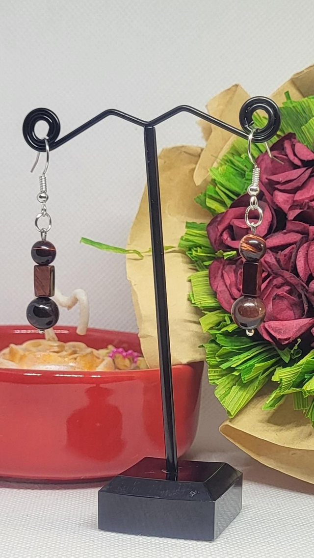 Boucles d'oreilles en pierres naturelles œil de taureau. Pierres 100% naturelles.