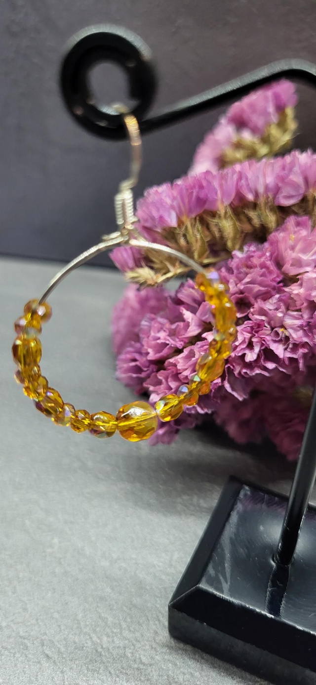 Boucles d'oreilles créoles en cristal autrichien montées sur acier inoxydable. Attaches en argent 925.
