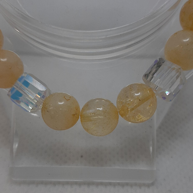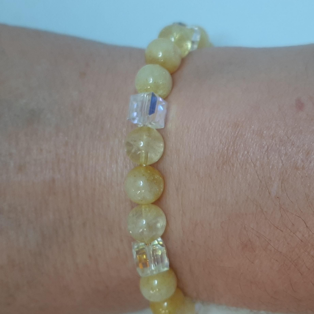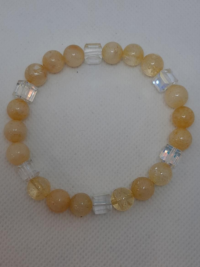 Bracelet en pierre naturelle citrine et perle en verre de cristal. Taille de perles 8 mm. Taille de bracelet 18 cm de diamètre