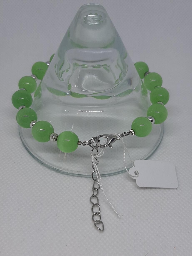 Bracelet en pierres naturelles. Œil de chat en 10 mm. Intercalaires en métal chromé. Attache métal chromée. Taille de poignet 21 cm plus une rallonge