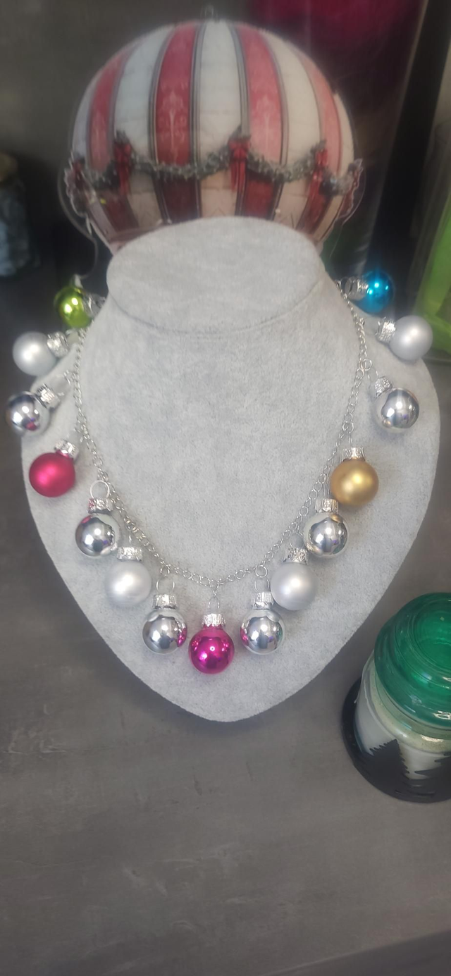 Collier de Noël avec 17 boules de Noël multicolores de 2cm de diamètre montées sur une chaîne.