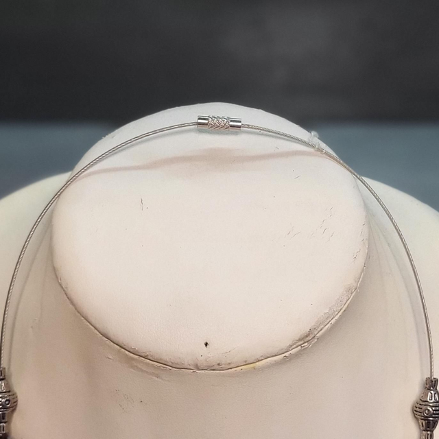 Monté sur fil d'acier inoxydable torsadé et gainé.