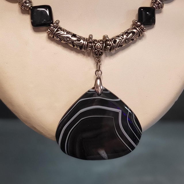 Perles d'agates et perles de métal .